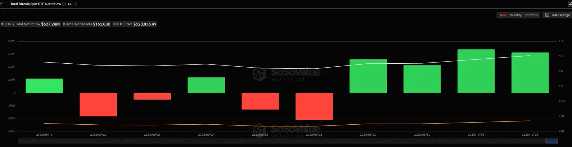 In a significant market shift, Bitcoin exchange-traded funds (ETFs) ended a streak of consecutive outflow days on September 29. Since then, these ETFs have attracted nearly $1 billion in inflows, indicating a renewed investor interest in Bitcoin.